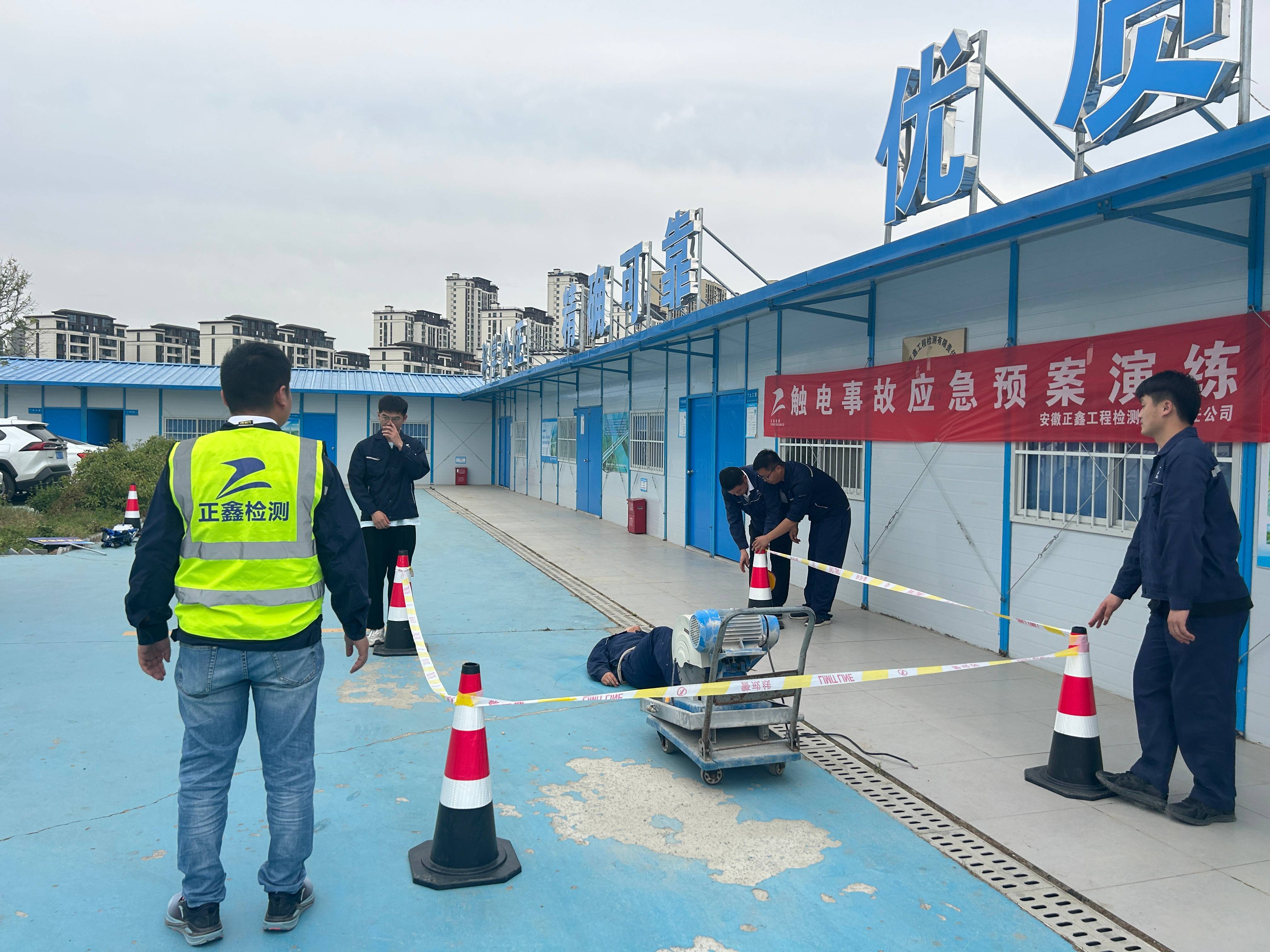 为认真贯彻“安全第一,预防为主”的方针,切实开展好“人人讲安全,个个会应急”为主题的安全月活动。6月18日,正鑫检测公司徐淮阜高速阜阳段02标段工地试验室组织开展了触电事故应急预案演练活动,试验室全体人员共同参加演练,公司经理王思伟亲临预案演练现场观摩指导。