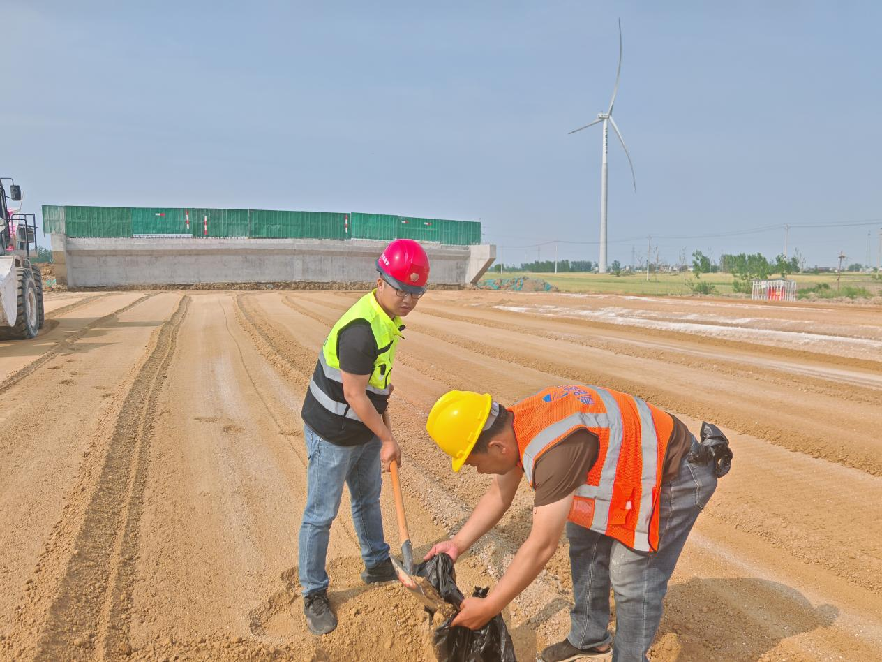 炎炎夏日迎端午,浓浓情谊筑匠心。425(原423)省道颍河至六十里铺段工程工地试验室端午佳节保持全员在岗,以高度的责任感和使命感,严控工程质量,及时高效完成各项检测服务工作。试验室采用"随工检测、即时反馈"的工作机制,为本项目顺利推进提供了坚实的技术保障。