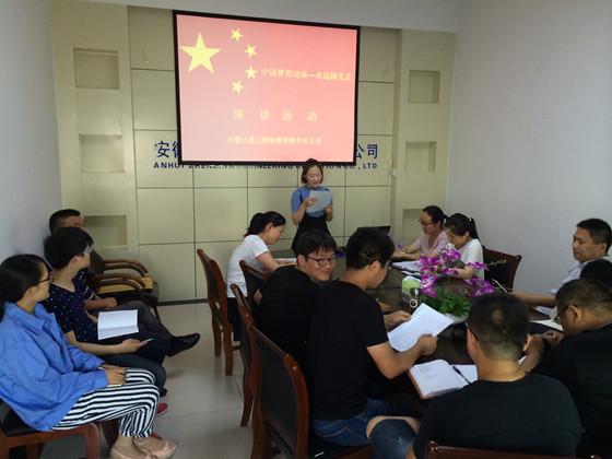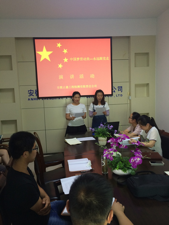6月18日,正鑫检测公司在会议室组织了“中国梦 劳动美---永远跟党走”主题演讲活动。经过各部室推荐,四组选手从不同角度阐述了自己对党的热爱,对中国梦的祝福,对劳动美的理解,讴歌了党的丰功伟绩,以及为实现中华民族伟大复兴中国梦而奋斗的豪情壮志,表达了员工爱岗敬业、无私奉献的精神。
