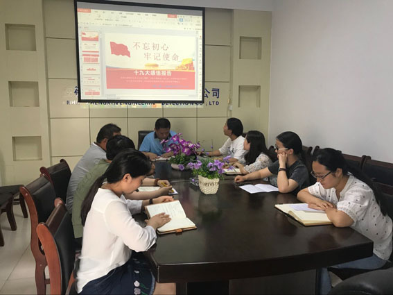 在党的生日来临之际,6月30日,正鑫检测公司组织党员干部和职工开展了“不忘初心 牢记使命”为主题的十九大感悟报告活动。