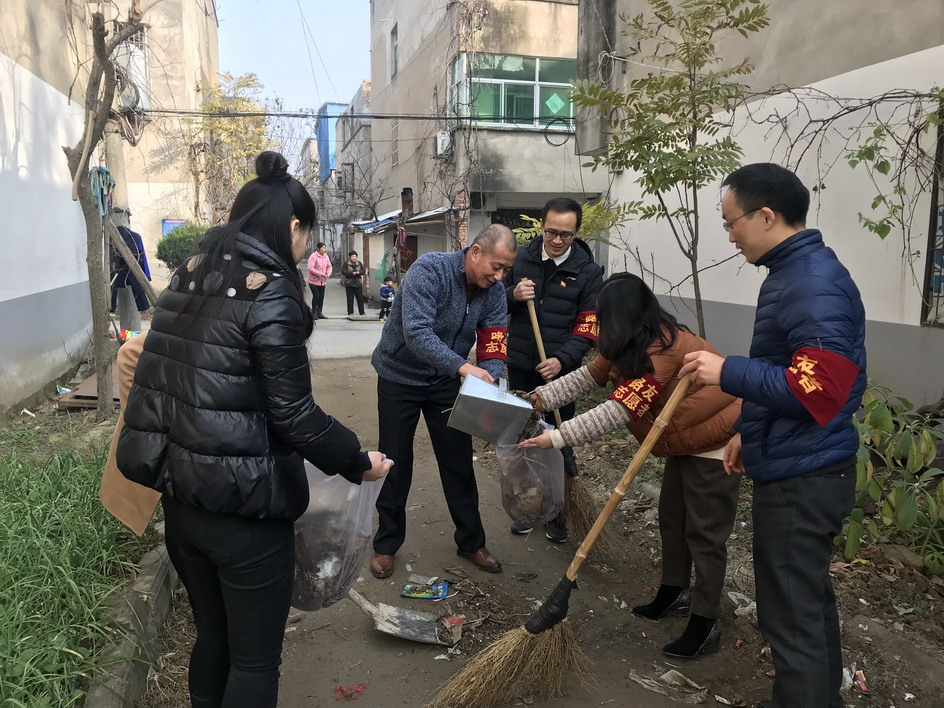 党员志愿者在清扫社区街道