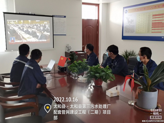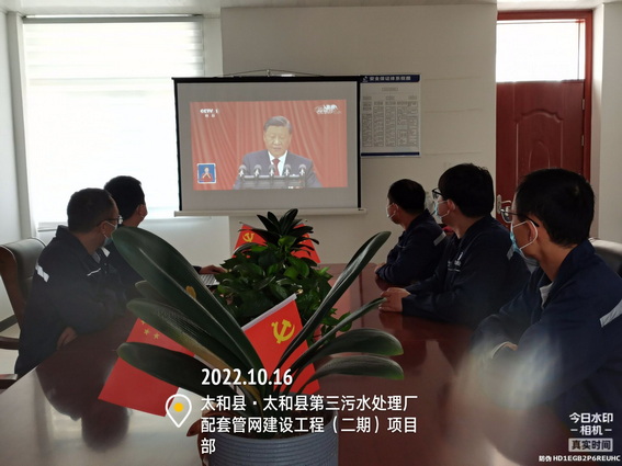 10月16日上午10时,举国关注的中国共产党第二十次全国代表大会在京隆重召开。中国共产党第二十次全国代表大会在人民大会堂开幕,习近平总书记代表第十九届中央委员会向大会作报告。太和税镇、污水管网项目部组织各科室人员以多种方式收看大会直播盛况。