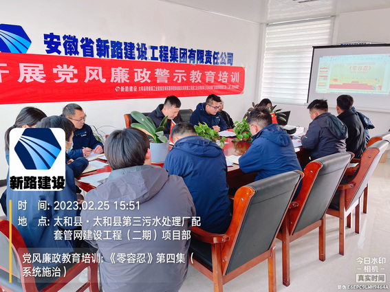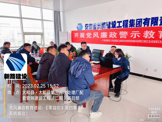 为进一步加强党风廉政建设,提高太和税镇项目全体员工拒腐防变和廉洁意识,2月25日下午,太和税镇项目组织全体员工观看警示教育片《零容忍》第四集《系统施治》,会议由综合办公室负责主持,会议以PPT和视频形式进行展开。