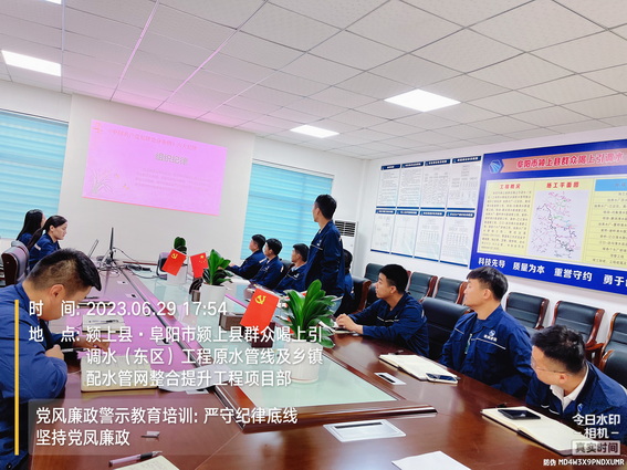为进一步学习廉政文化、中国共产党廉洁自律准则、中国共产党纪律处分条例,增强项目员工廉洁自律意识,深化党风廉政建设和反腐败工作,6月29日下午,颍上管网东区项目在会议室组织全体员工开展了党风廉政专题教育培训。